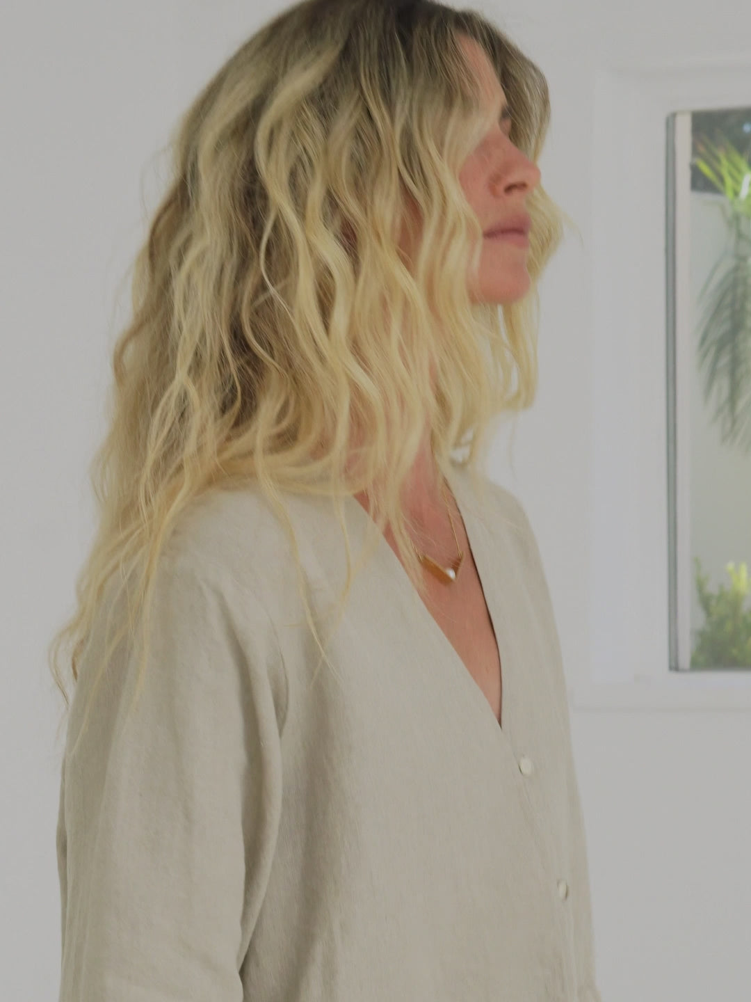 Two looks in one. Made from a heavier 100% linen, the Emilia has a substantial feel that holds its shape while staying breathable. We designed it with a clean, collarless neck so you can wear it two ways: buttoned up as a minimal top, or open as a light layer. It’s a durable, simple piece made to last and get softer with every wash.