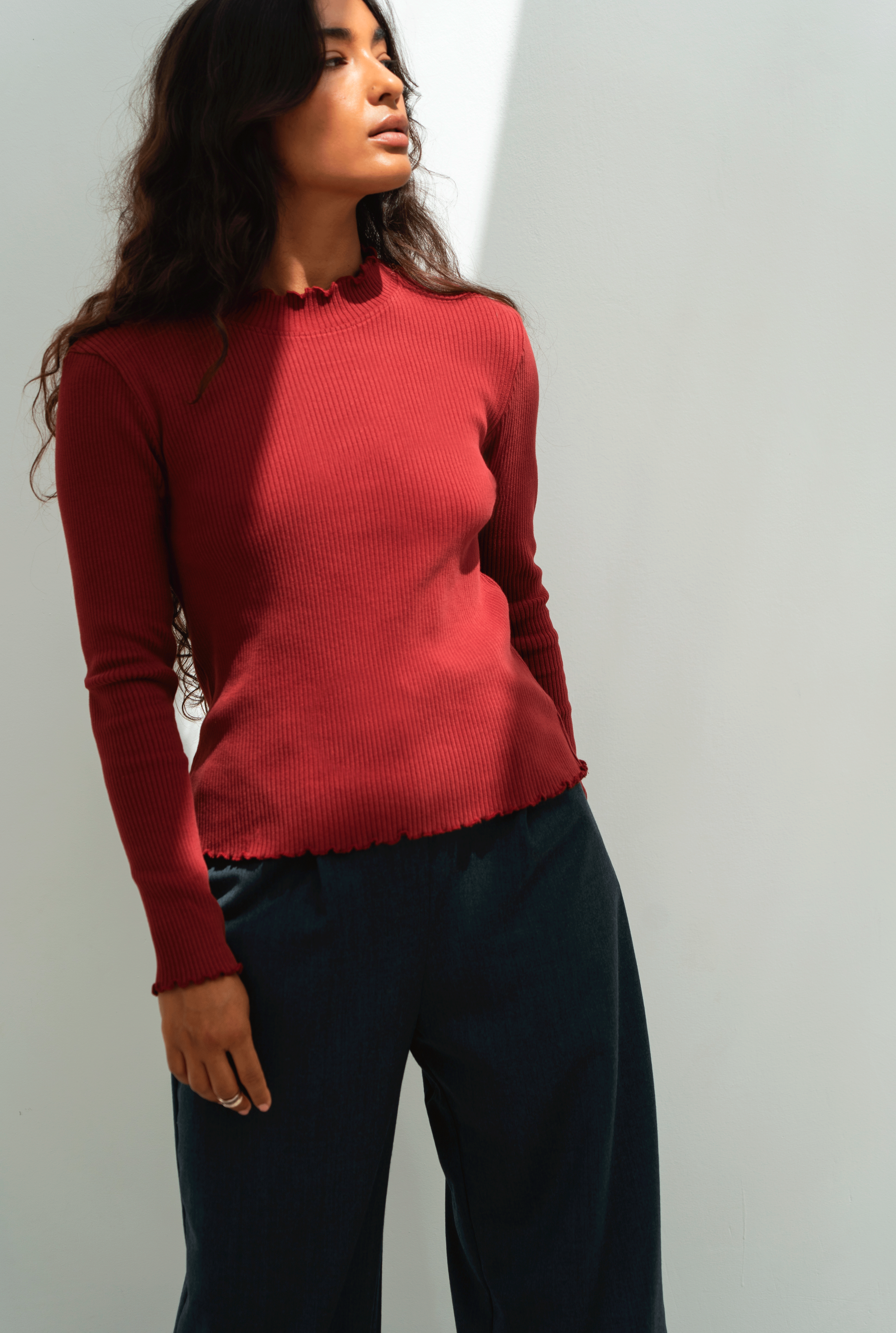 The all-time essential long-sleeve turtleneck - made in a soft textured rib knit.